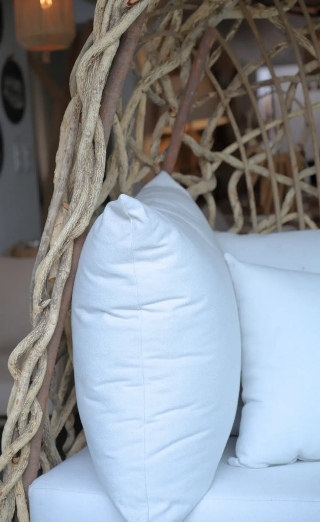 Asiento tipo nido hecho con liana natural tejida a mano. Incluye cojinería suave en tela interior. Ideal para interiores o exteriores techados.