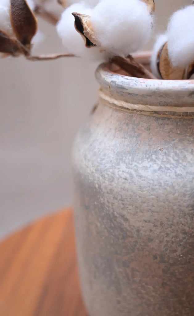 Jarrón decorativo de barro moteado hecho a mano. Ligero, neutro y lleno de textura para complementar cualquier espacio.