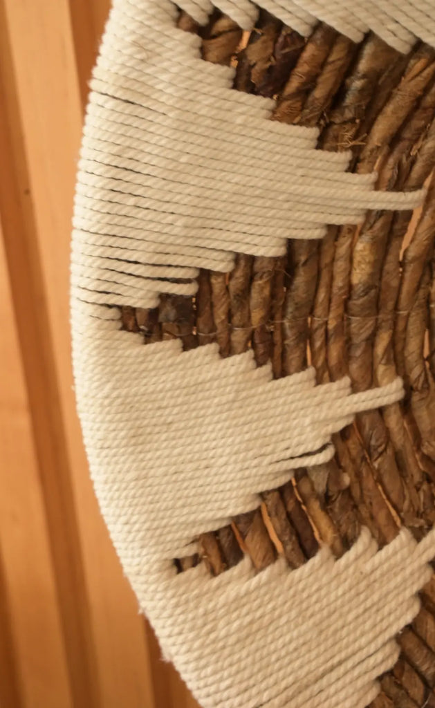 Set de 3 platos decorativos hechos a mano con hoja de plátano y cuerda de algodón. Artesanía natural para tus muros.