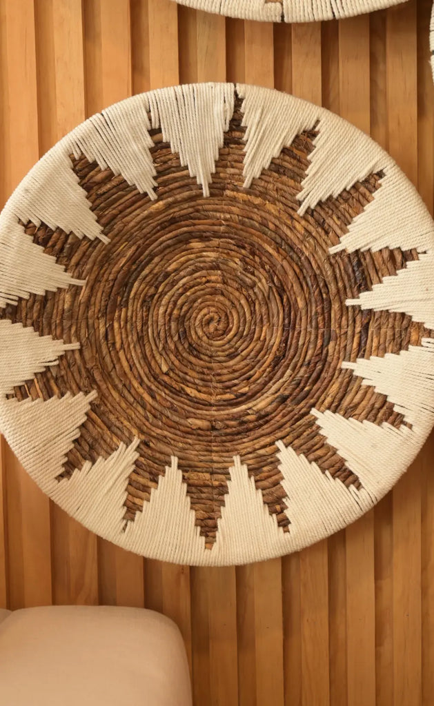 Hechos con hoja de plátano natural y cuerda de algodón, los Platos Decorativos Bali son el detalle artesanal que transforma cualquier muro en una obra de arte. Este set de tres piezas está tejido a mano por artesanos mexicanos, cuidando cada trazo para lograr un diseño limpio, natural y con mucha personalidad.