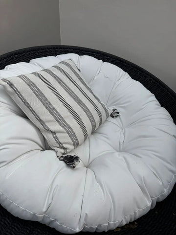 ¡Encantador! Este cojín es una pieza artesanal delicada, fina y con diseño único, elaborado a mano por artesanos mexicanos en tela de exterior. Funda extraible.