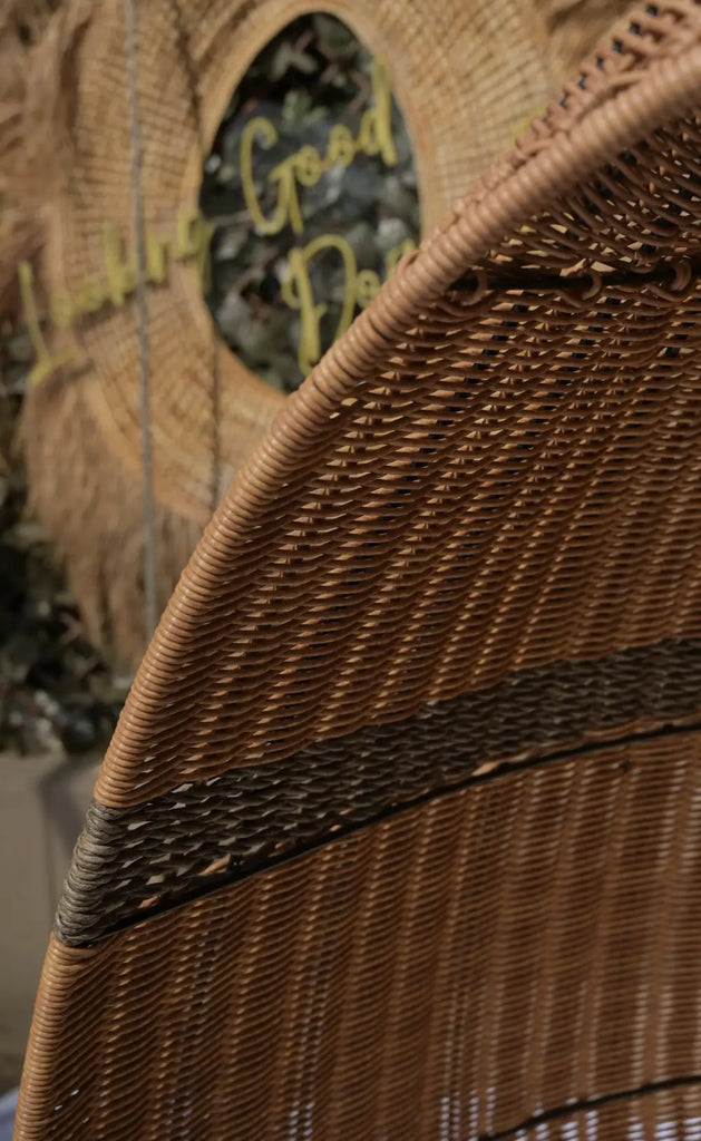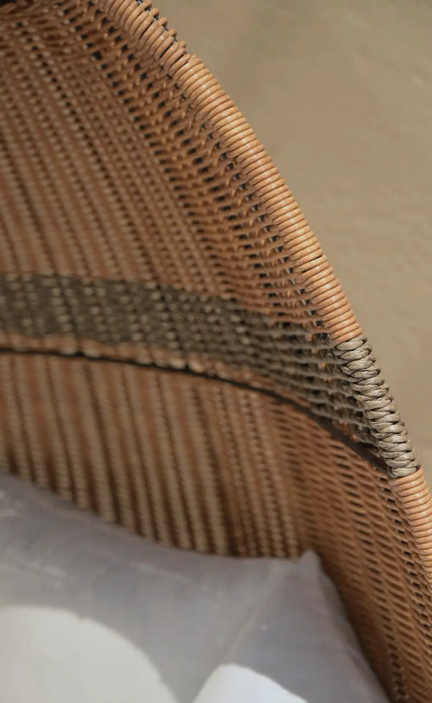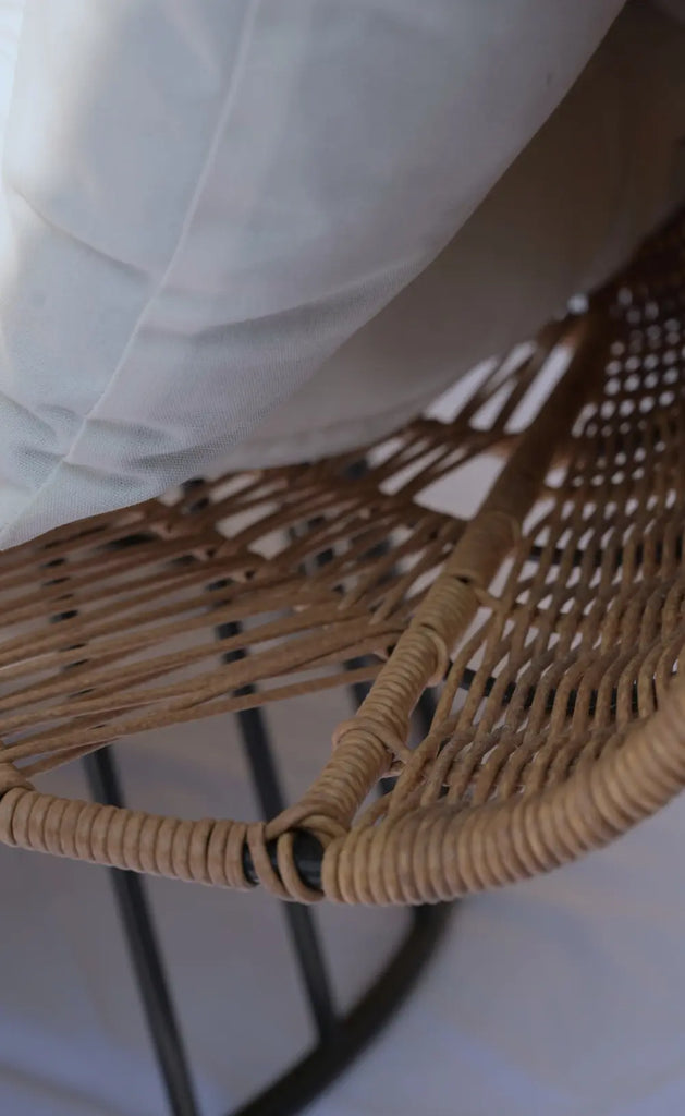 Incluye cojinería blanca para mayor comodidad y un diseño cálido en color miel con detalles en gris que combina con todo. Una pieza que invita a la calma, al descanso y a disfrutar del momento.