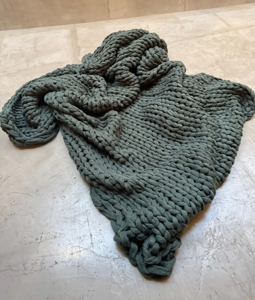 Envuélvete en comodidad! Tejida a mano, de estambre. Suave, cálida y con estilo atemporal para complementar tu descanso y tu espacio.