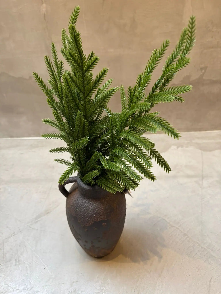 Clásico y elegante, el Jarrón Torreón Navideño es una pieza decorativa de cerámica en color cafe, y en conjunto con el follaje navideño, aportan elegancia, calidez y armonía visual. Su acabado artesanal y forma simple lo hacen perfecto para cualquier rincón de tu casa, sobre una mesa, credenza, sala, etc.