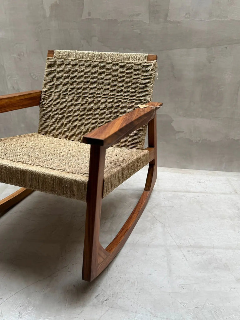 Una pausa bien merecida. El Sillón Mecedora Mexicali está elaborado artesanalmente con estructura de madera sólida de parota y tejido en alga marina. Su diseño combina tradición y comodidad, ideal para disfrutar de una tarde tranquila en interiores o terrazas techadas.