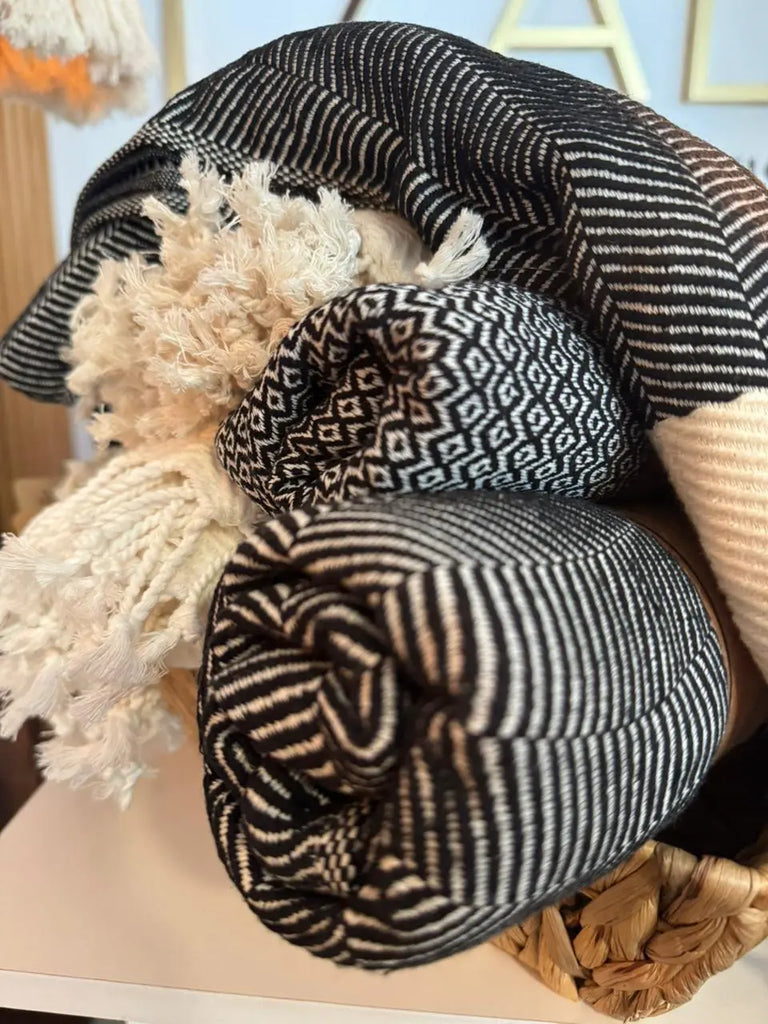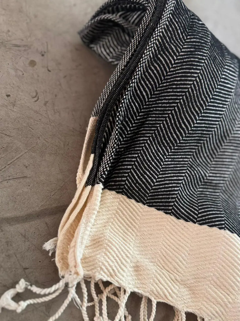 Suave y elegante, ideal para que tu baño tenga un look diferente a los demás. Hecha 100% de algodón, tejida a mano por artesanos mexicanos; su diseño en color negro con detalles en color beige la convierte en una pieza única y funcional.