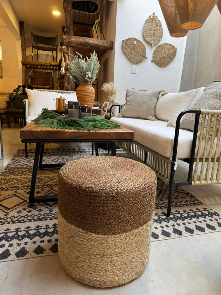 ¡Precioso! perfecto para darle el toque final a tu espacio; chic y moderno. Tejido a mano con yute en color natural y cafe.