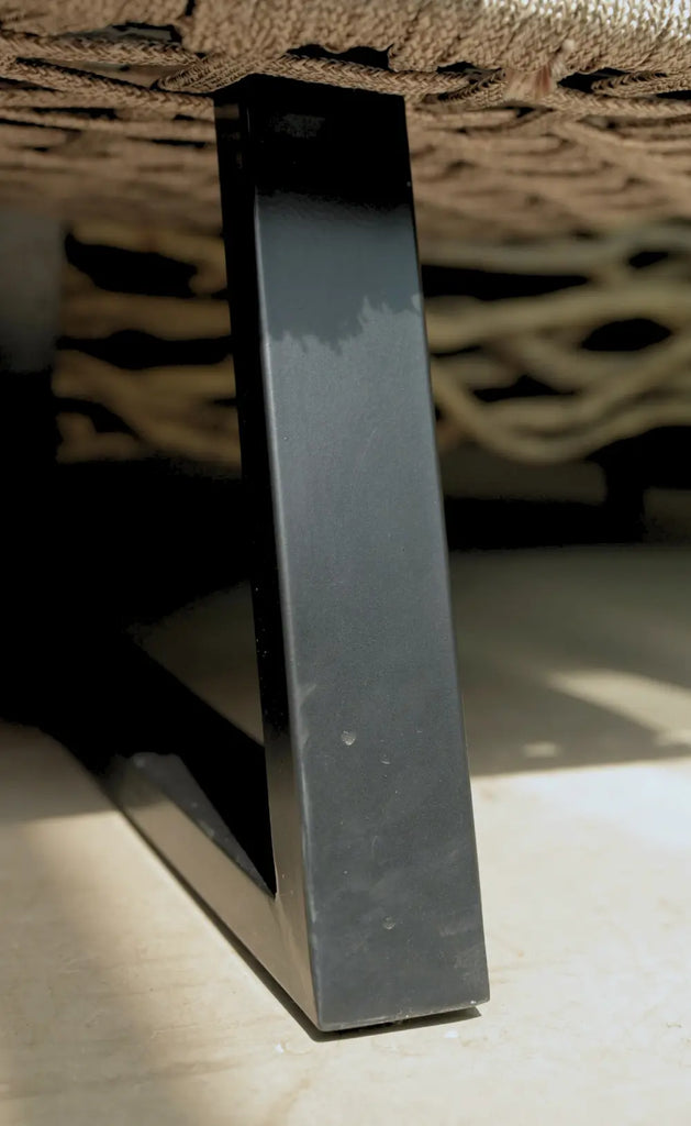 El Sillón Holbox de tres plazas combina artesanía, diseño y funcionalidad en una sola pieza. Hecho a mano por artesanos mexicanos, su estructura metálica negra está tejida con cuerda de nylon de alta resistencia, ideal para resistir calor y humedad. Incluye cojinería suave en tela de exterior, lo que lo hace cómodo y duradero para espacios al aire libre o interiores.