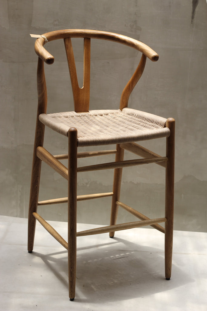 Ideal para barras, cocinas o credenzas, este banco combina materiales nobles con un diseño sobrio y funcional. El acabado suave de la madera en tono natural añade calidez y se integra con facilidad en espacios interiores contemporáneos o rústicos.