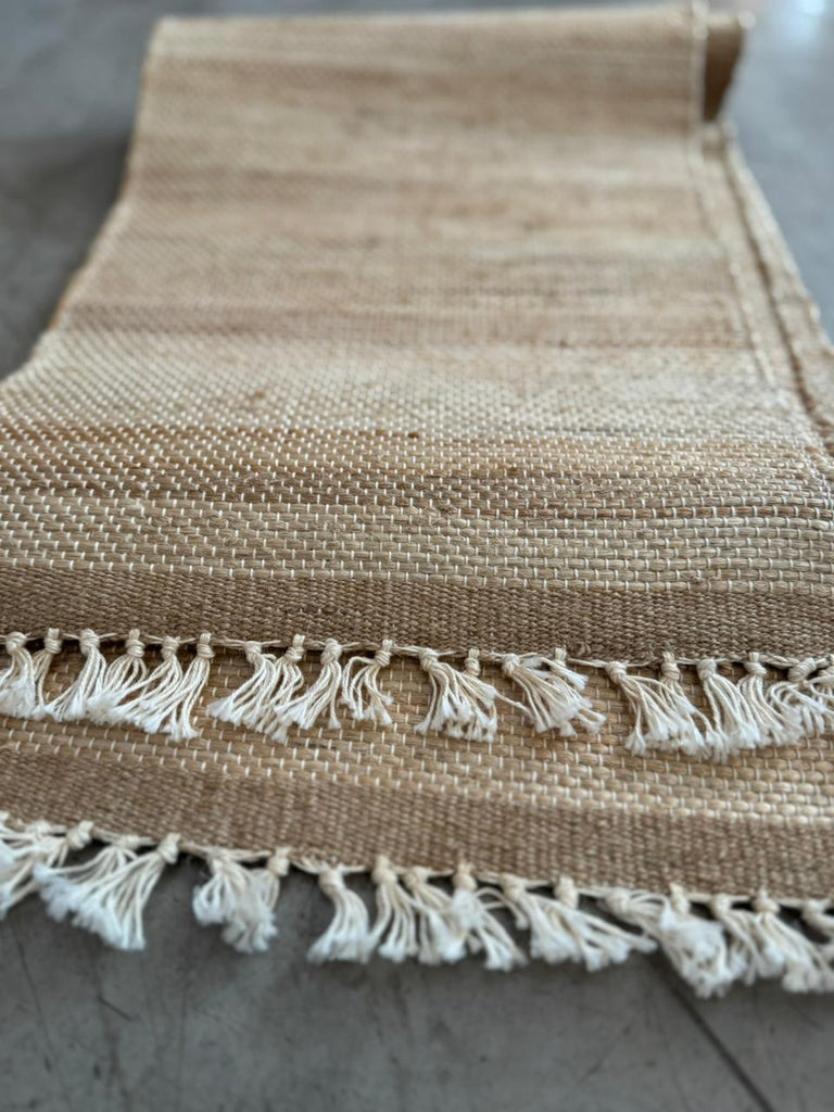 ¡Tienes que tenerlo! Su diseño artesanal pero elegante, destaca ante cualquier otro modelo; esta tejido a mano por artesanos mexicanos en yute con macramé, cuidando cada detalle. Tu mesa se verá increíble al colocarle este camino de mesa.