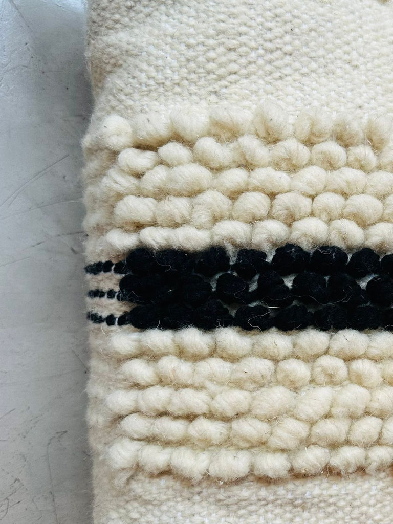 Un básico con carácter. El Cojín Sofía está elaborado en 100% lana con una franja negra que aporta contraste y estilo atemporal. Su textura cálida y su diseño sencillo lo convierten en el complemento ideal para sofás, sillones o camas.