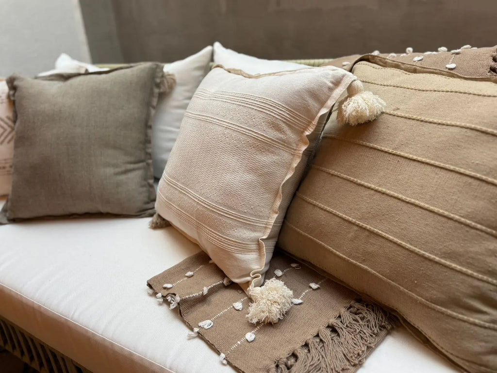 ¡Encantador! Este cojín es una pieza artesanal delicada, fina y con diseño único, elaborado a mano por artesanos mexicanos en tela de algodón. Funda extraíble.