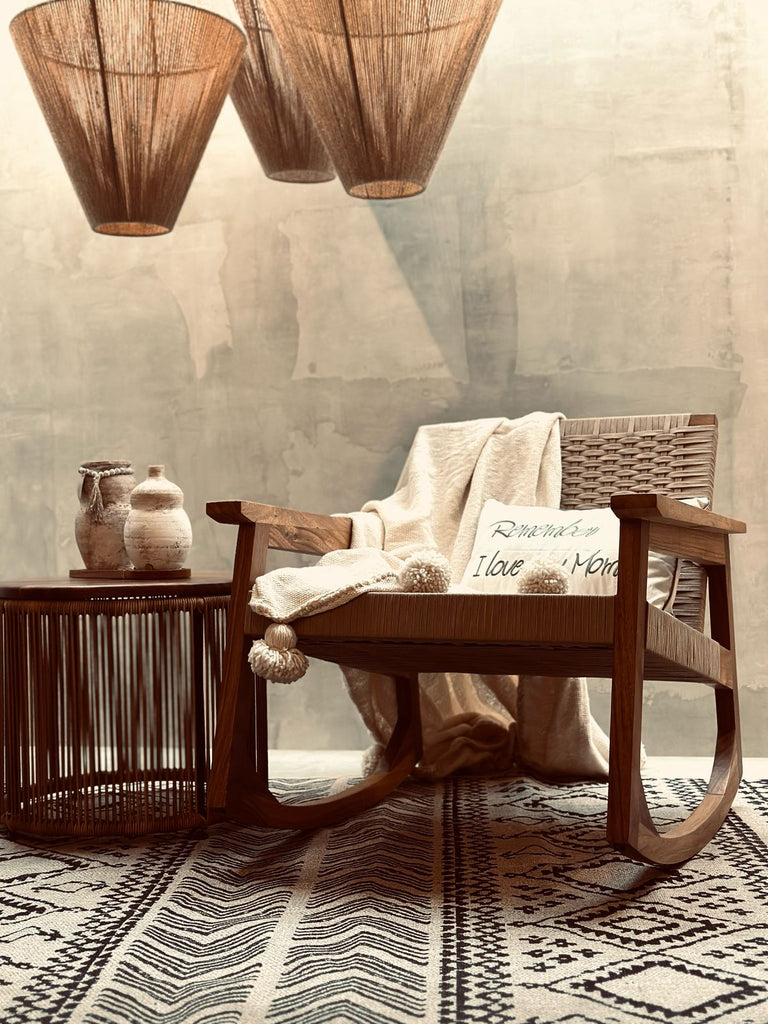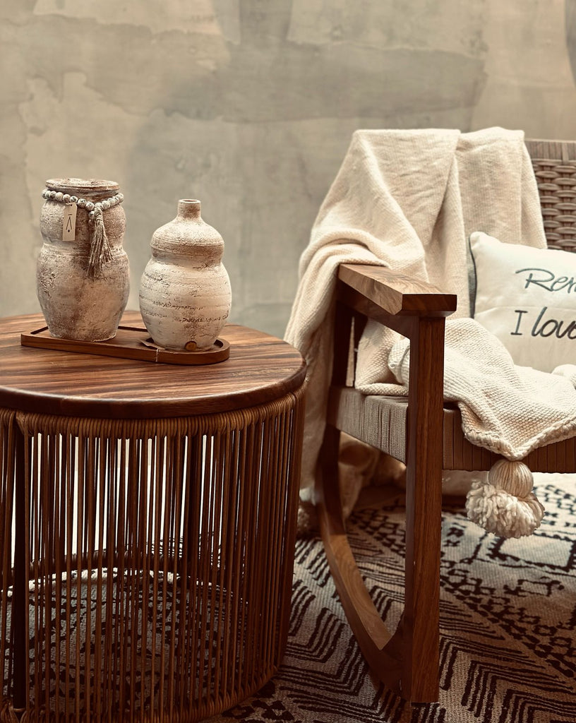 ¡Simplemente DIVINO! Compuesto por el Sillón Mecedora Sonora, Mesa Auxiliar TZALA, Jarrón Dorotea, Jarrón Amoxtli, Frazada Duna y Cojín decorativo, este set es el mejor regalo que puedas darle a tu mamá. Fue pensado para darle comodidad, elegancia y estilo a su espacio, ya sea su recamara, sala, terraza, etc. Te aseguramos que le va a encantar, y que, desde el día que lo tenga será su espacio favorito.