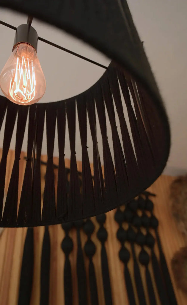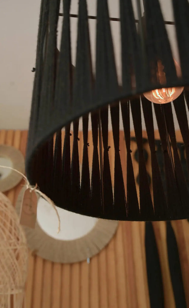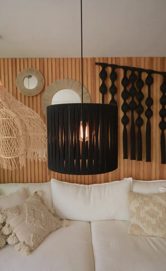 Ideal para comedor, sala o terraza techada, puedes colgarla a la altura que prefieras y añadir una bombilla ámbar para un toque cálido y acogedor. Un detalle sutil que transforma tu espacio.