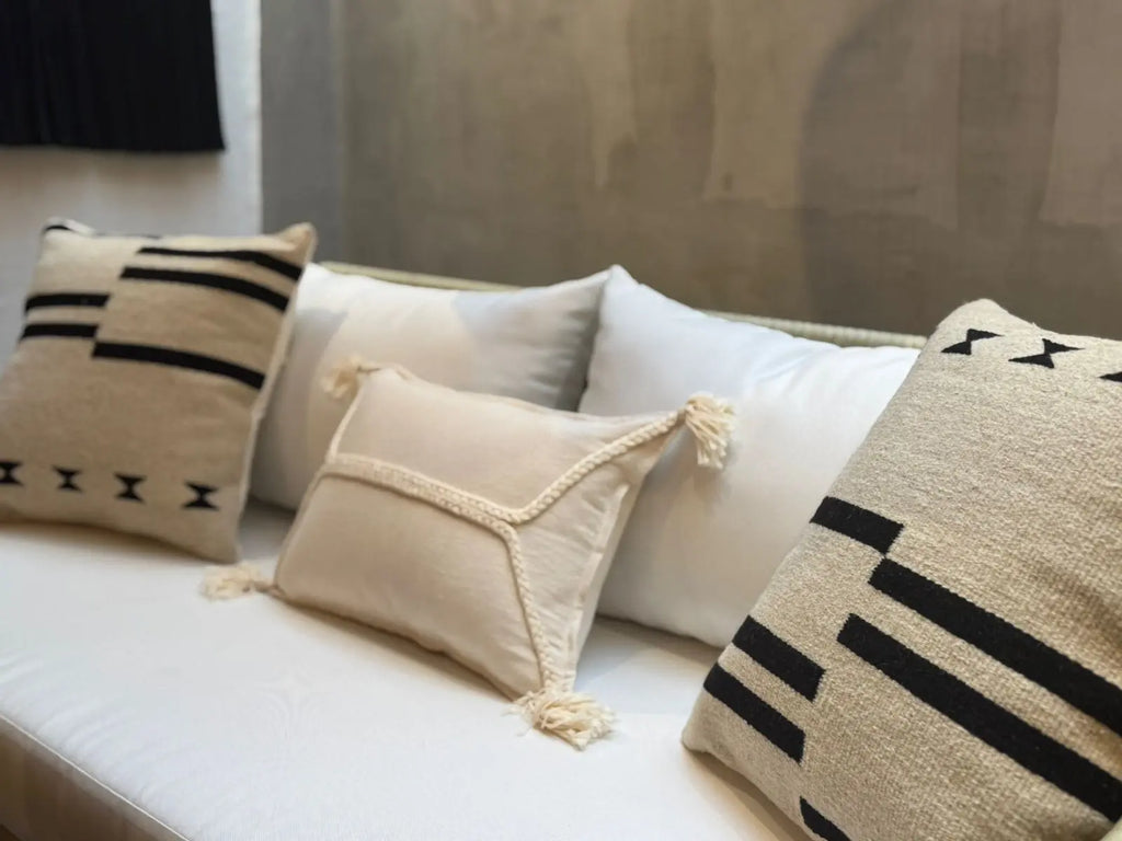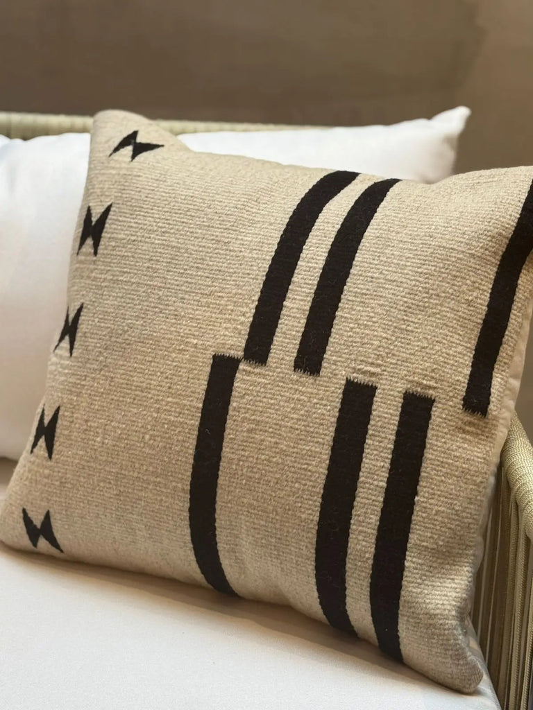 Cojín decorativo de lana con relleno de espuma y funda removible. Cálido, suave y con diseño elegante y funcional.